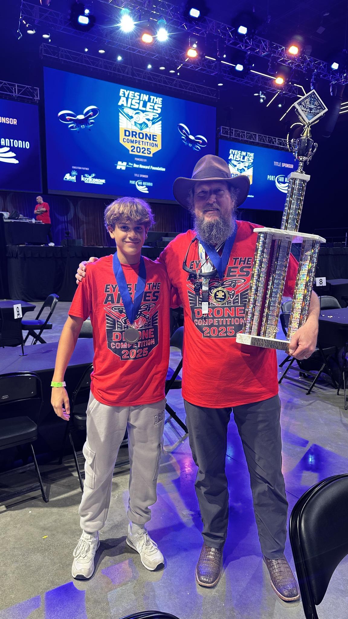 Forty-nine teams from across Texas competed… and one of our own rose to the top. Our Loma Alta Team “Benjamin Franklin”—Juliano Storino, Dylan Alvarado, and Josue Salazar—earned the highest overall score in the entire competition and claimed the GRAND CHAMPION TROPHY!