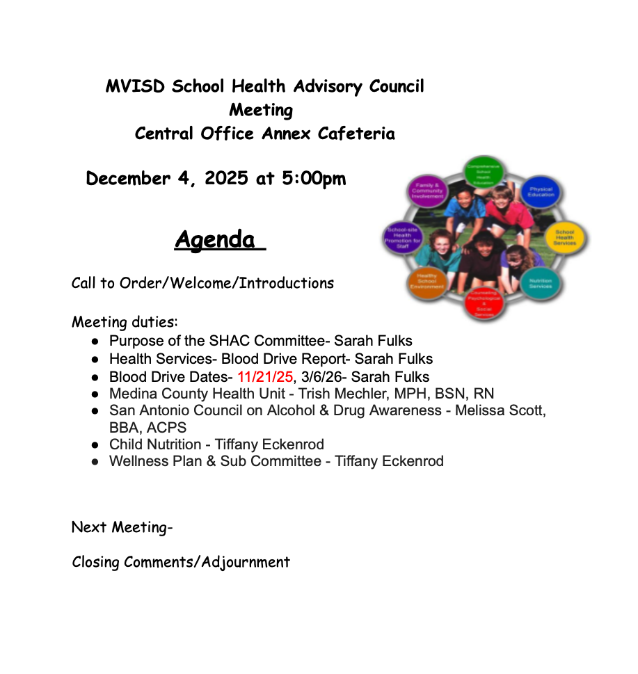School Health Advisory Council Meeting Agenda - Dec. 4